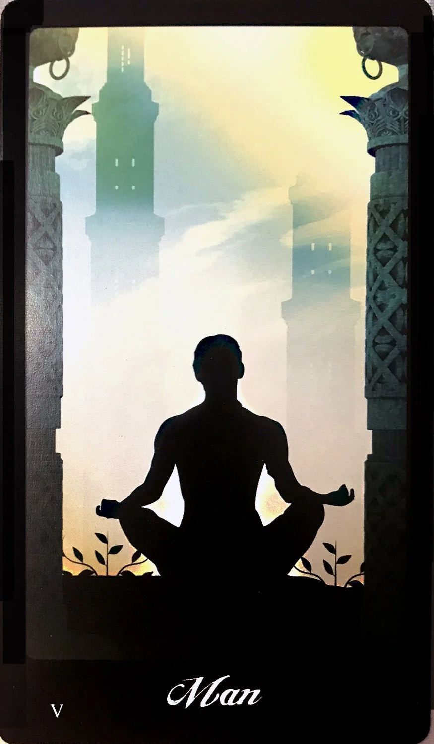 Those traditions, inheritances, and systemic structures, the foundations upon which each of our lives are built for good or ill, are what the Man card (also known as the Hierophant) represents. They are our first sense of order and structure, of safety and wellbeing. And sometimes, they cause us a lot of harm.